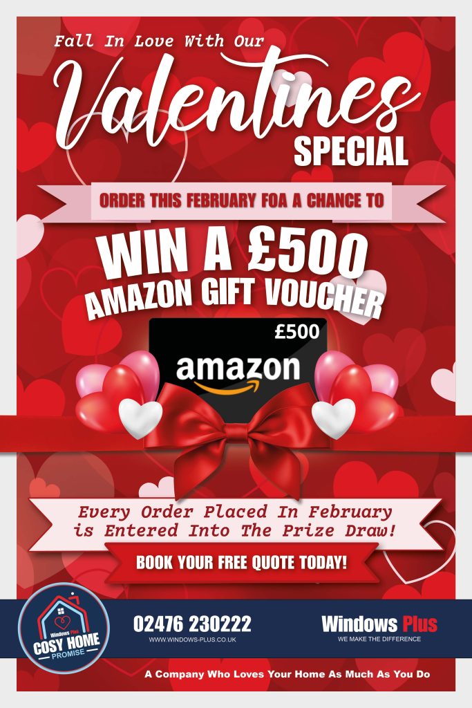 Latest Offers WIN A £500 AMAZON VOUCHER THIS VALENTINES IF YOU ORDER YOUR WINDOWS AND DOORS IN FEBRUARY TERMS AND CONDITIONS APPLY**